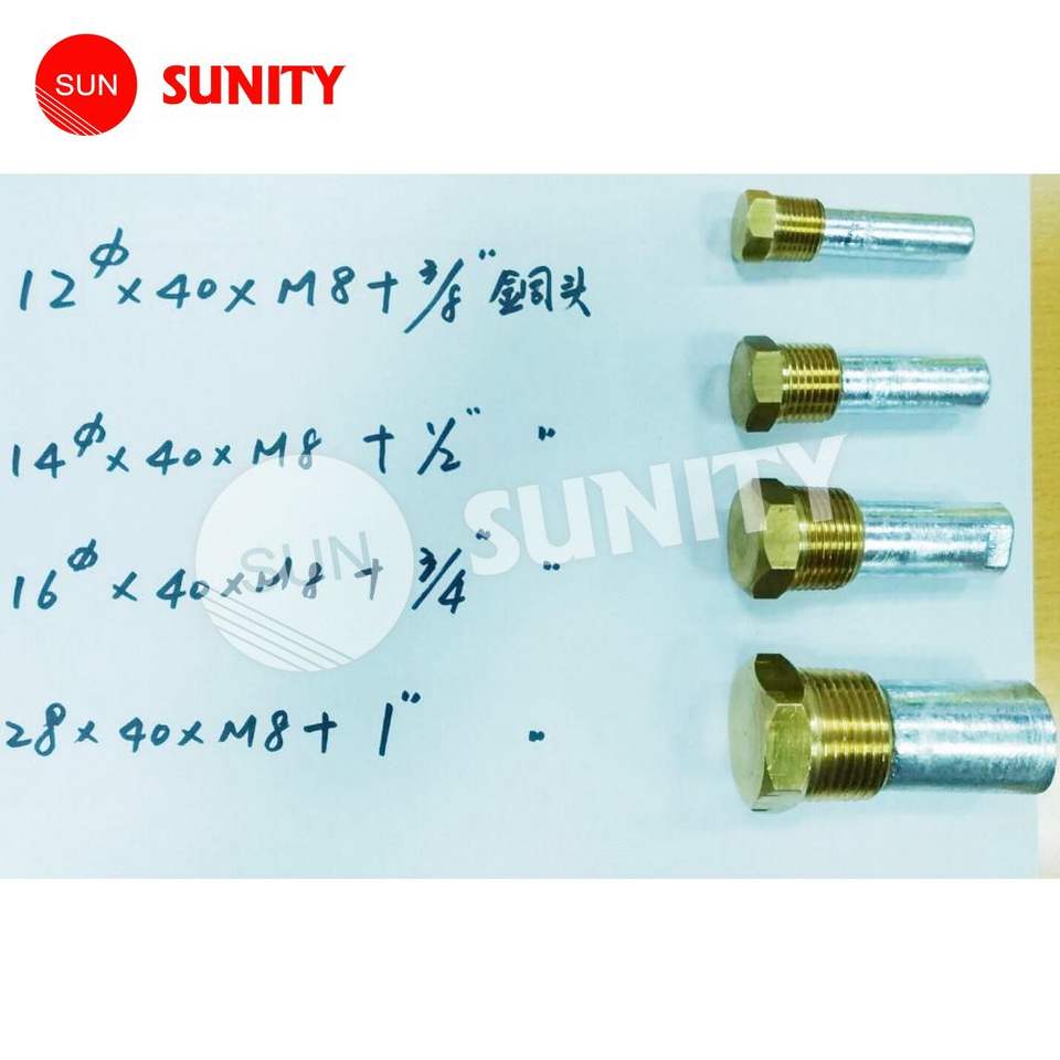 TAIWAN SUNITY Auto Boat Power Boat Part 12mm*40mm*M8+3/8 Inch Pure Zinc Rod with Thread Plug