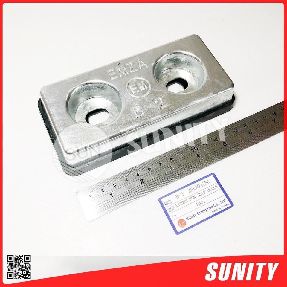 TAIWAN SUNITY High Efficiency Zinc Anode Marine B-2 Standard Size 20mm*50mm*M8+3/4" ISO9001 Certified for Ship Hulls