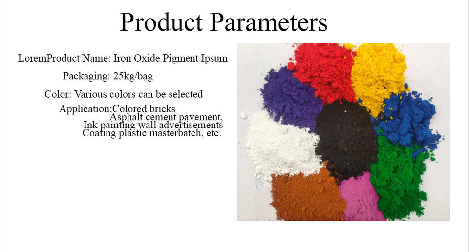 Usage:Ceramic Pigments, Coating Pigment, Cosmetic Pigment, Plastic & Rubber Pigment, Leather Pigments