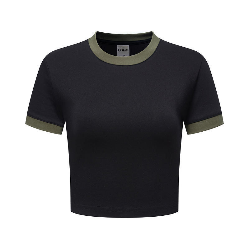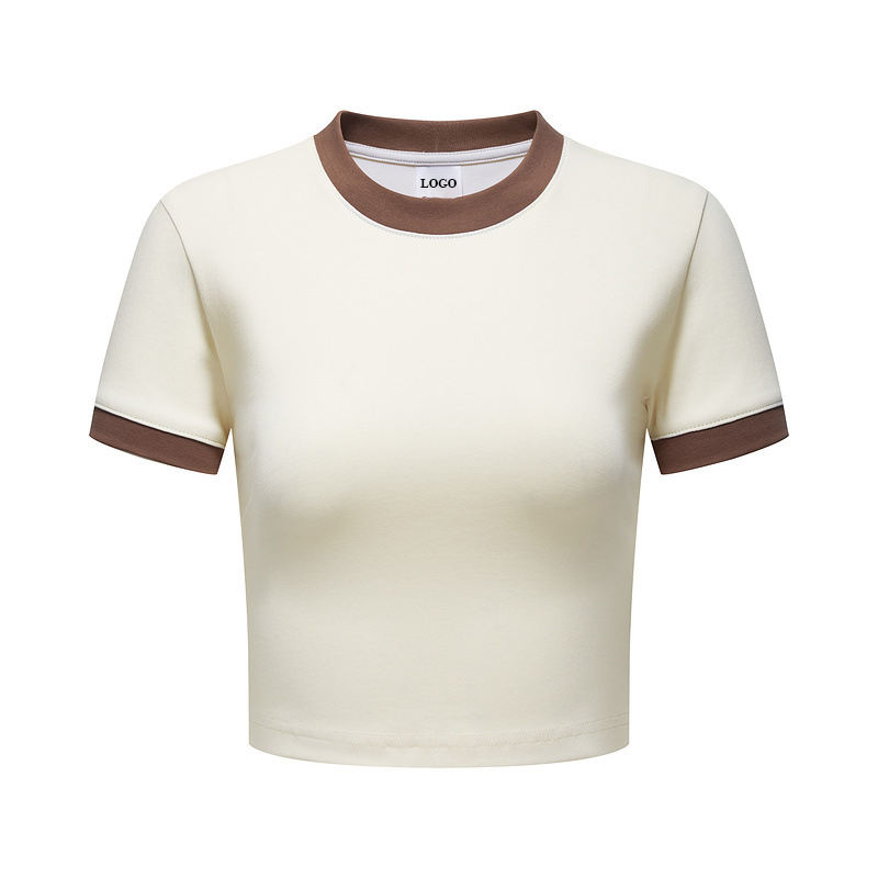 TANKTKANHigh Quality Custom Summer Y2K Color Matching Plain T-Shirt Elastic Retro Color Short T-Shirt Crop Short Sleeve Women