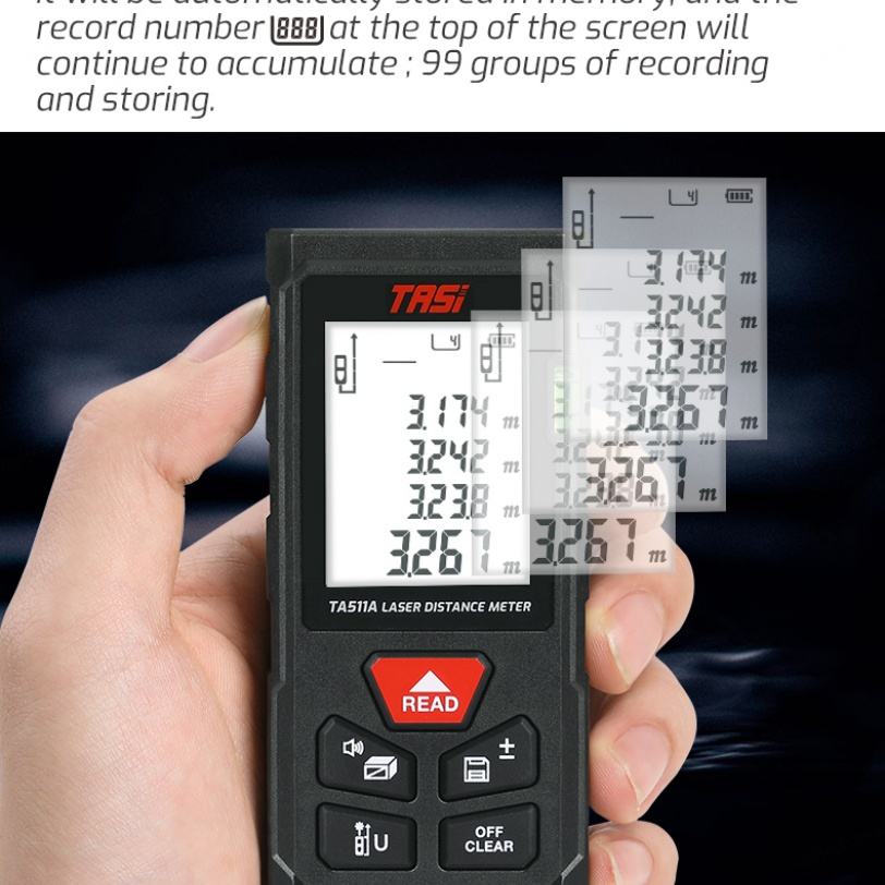 TASI TA511C Digital Laser Distance Meter 100m Horizontal Rangefinder