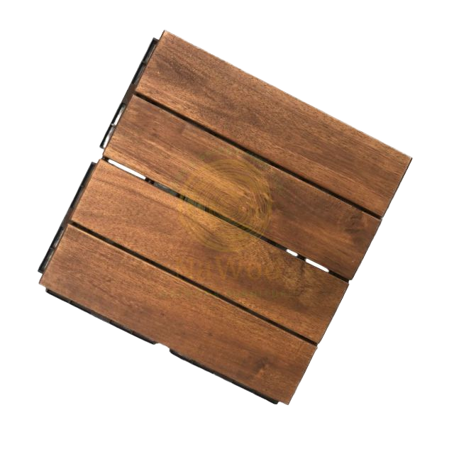 TBD 300x300mm Acacia Wooden Pattern Click Tile 4 Slat Interlocking Decking With Finish Oil Coating for Terrace Courtyard
