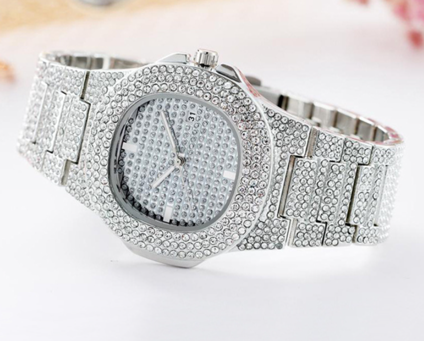 TBL Wholesale Alloy Watch for Lady Luxury Gold Clock Full Crystal Rhinestone Bling Quartz Watch Wrist for Woman