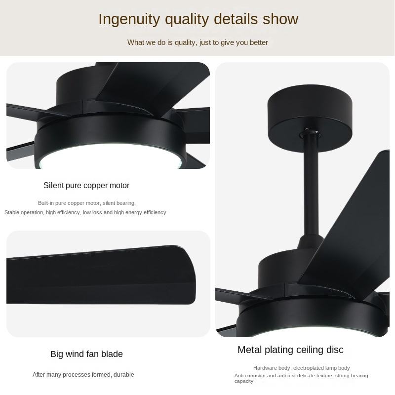 TCL Modern Smart 52 Inch 5 Blades Black Dc Motor Led Ceiling Fan with Light and Remote Control for Home Living Room or Bedroom
