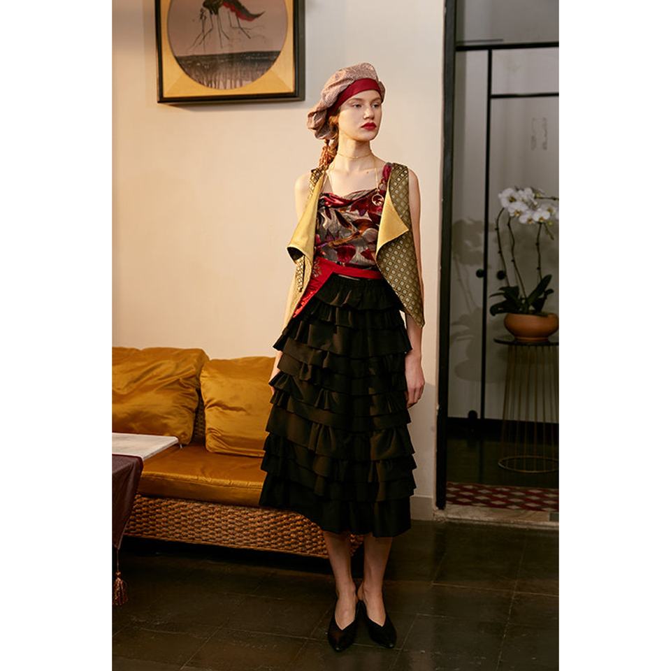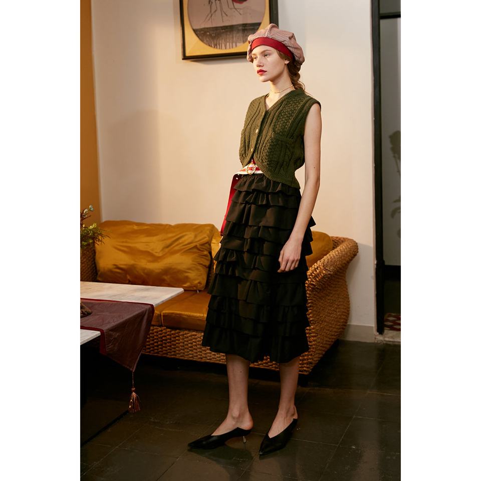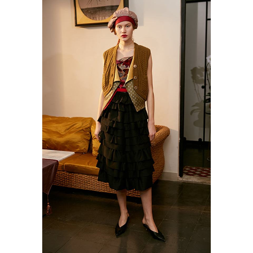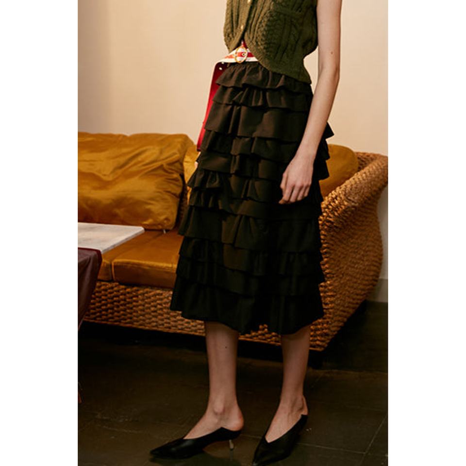 TD Black Midi Pencil Pleat Skirt Breathable and Plus Size Tiered Ruffle A-Line Design Plain Winter Skirt