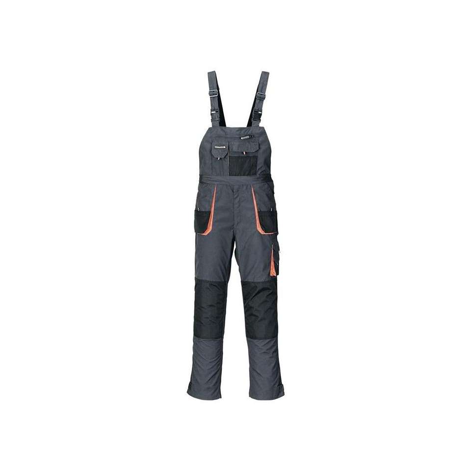 TERRATREND Men’s bib and brace size 60 dark grey/black/orange 65 % PES / 35 % cotton