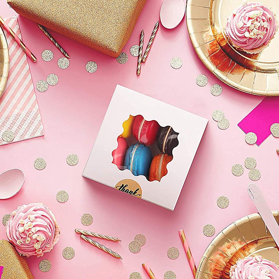 TH CB-181 Christmas Design White Cookie Boxes with Window 50 Pack and 6x6x3" Carrier Candy Box