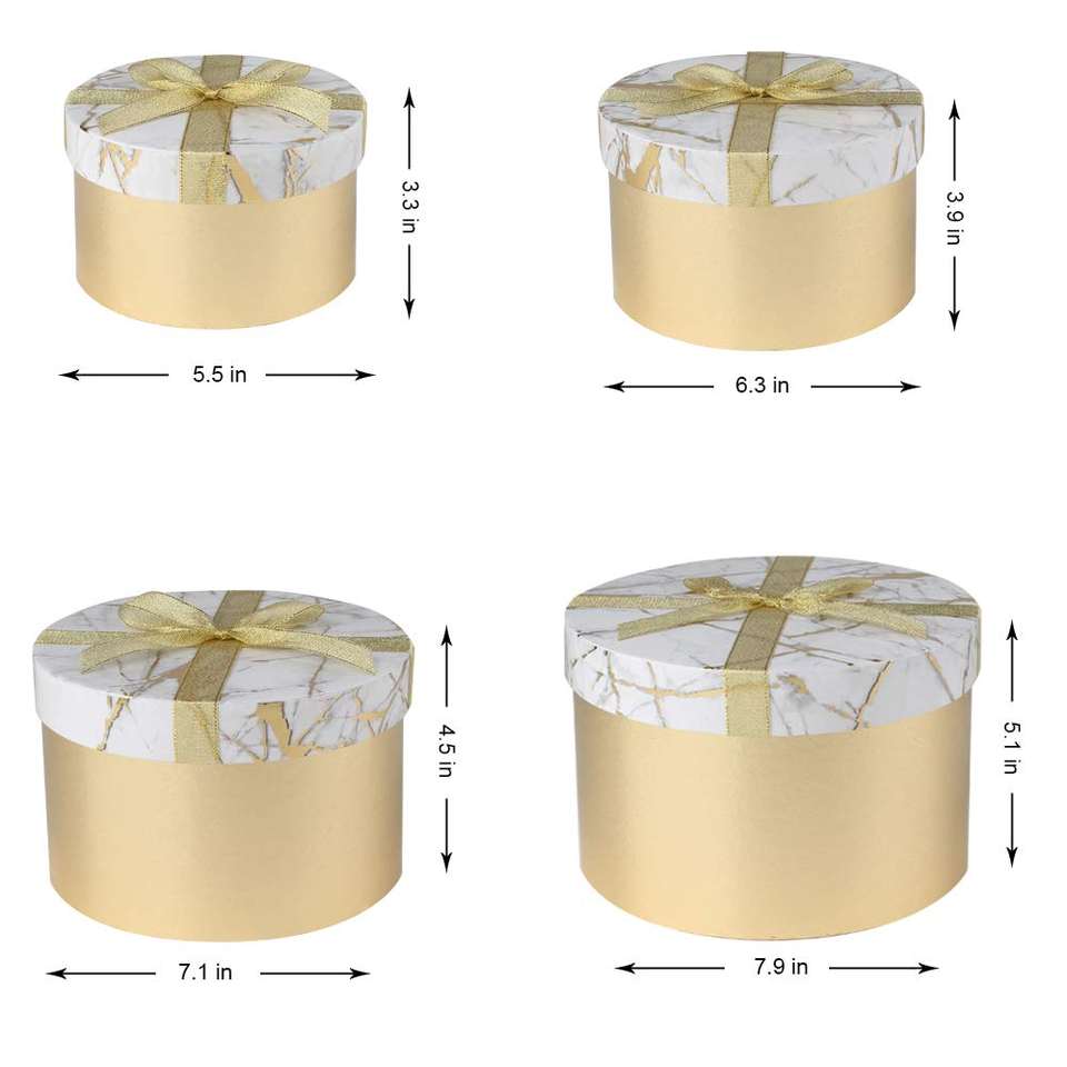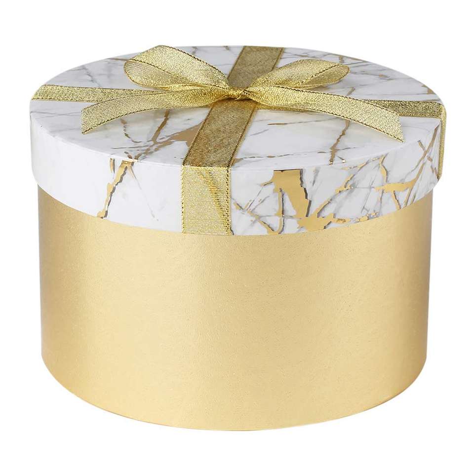 TH CBB-425 Round Gift Boxes with Marble Pattern and Ribbon in Elegant Gold for Luxury Packaging