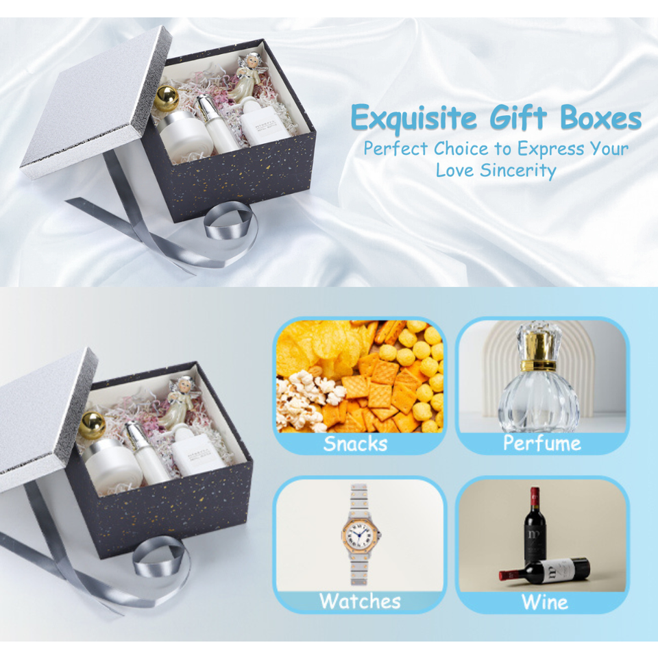 TH CBB-557 Recycled Materials Cardboard Gift Packaging Box Glitter Silver Lid Ribbon Cosmetics Corporate Gifts Custom Sizes
