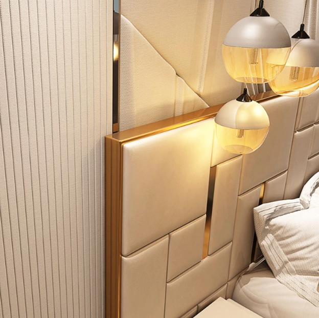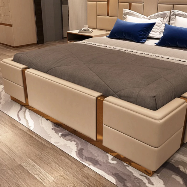 TH-H8111 Luxury Italian Design Leather Grey Headboard King Size Queen Size Double Bed Frame Beds With Storage Bedroom Set Furnit