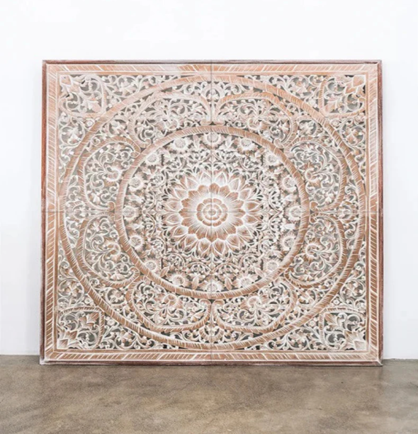 TH-H8172 Classic Wooden Headboard Carved Bed Head Wall Decor Handmade Carved Bed Headboard