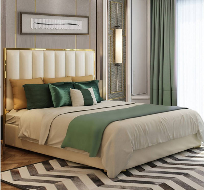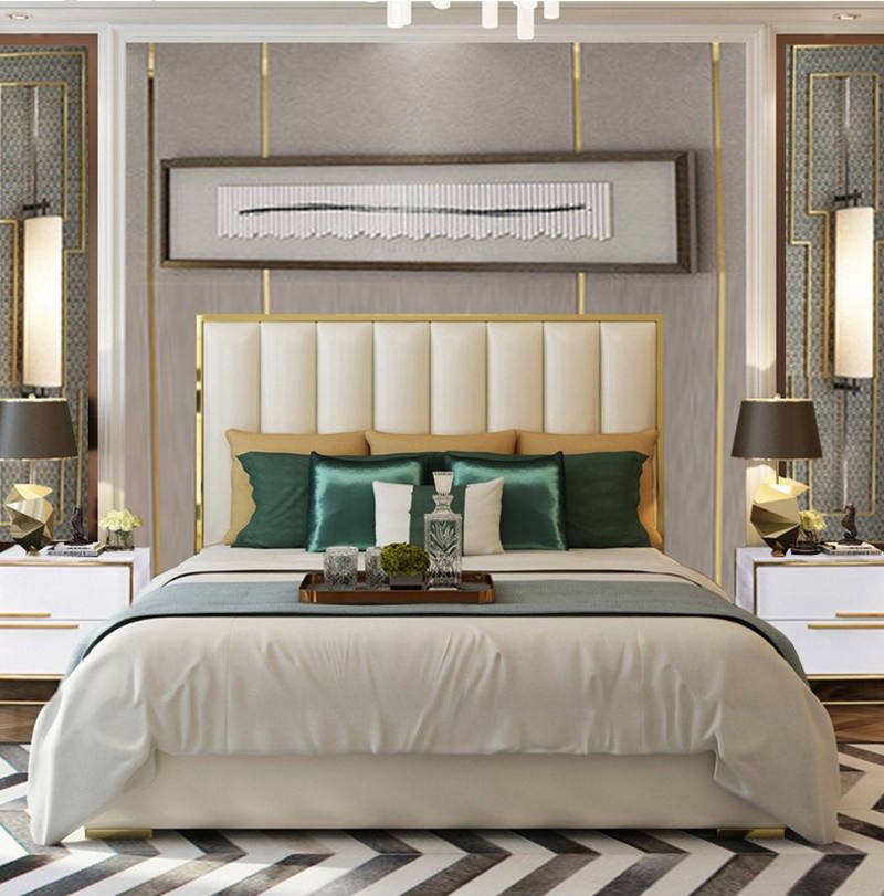 TH-H8267 Luxury Modern Leather Bed with High Headboard for Bedroom Home Furniture Storage Extendable Feature for Kitchen Use