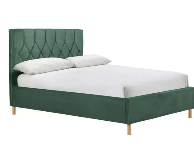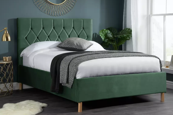 TH-H8299 Modern Green Nordic King Size Bed Fabric Headboard Upholstered Simple Wooden Frame Double Bed
