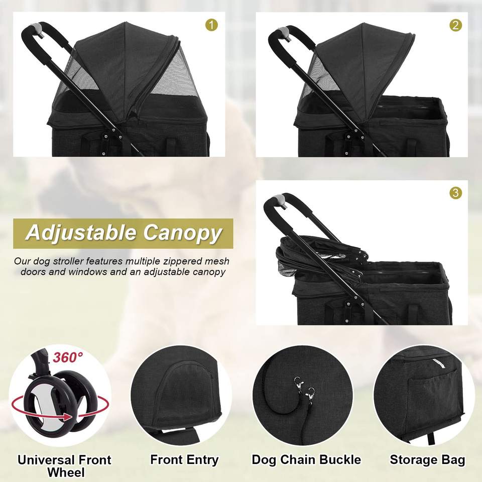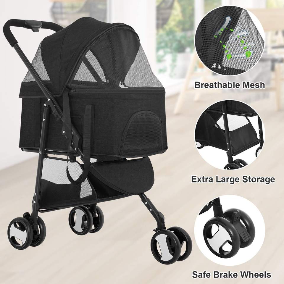 TH-PPS-044 Simple Folding Pet Stroller with Rain Cover Mesh Canopy and Storage Bag for Dog and Cat Owners