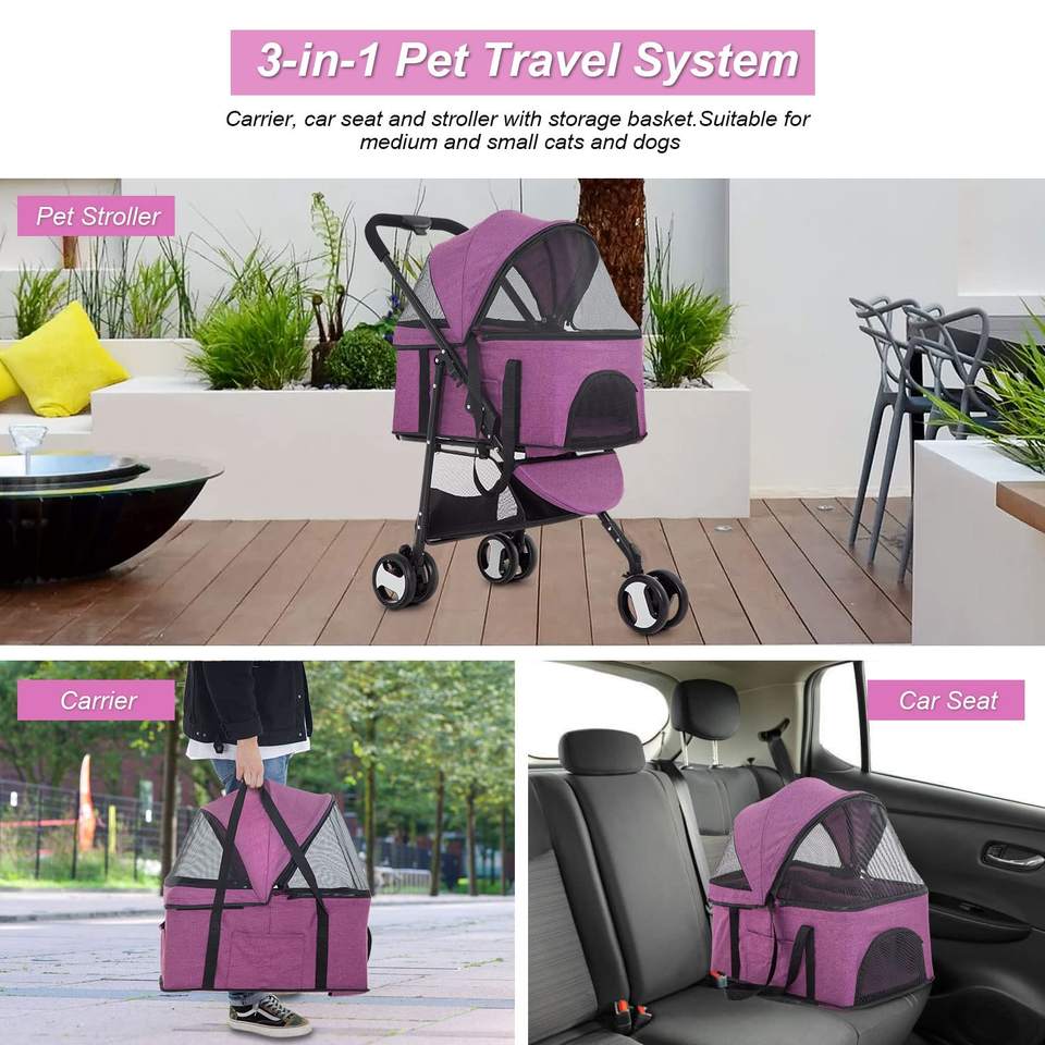 TH-PPS-046 Elegant Pet Stroller with Foldable Frame Safety Belt and Under Basket Storage for Accessories