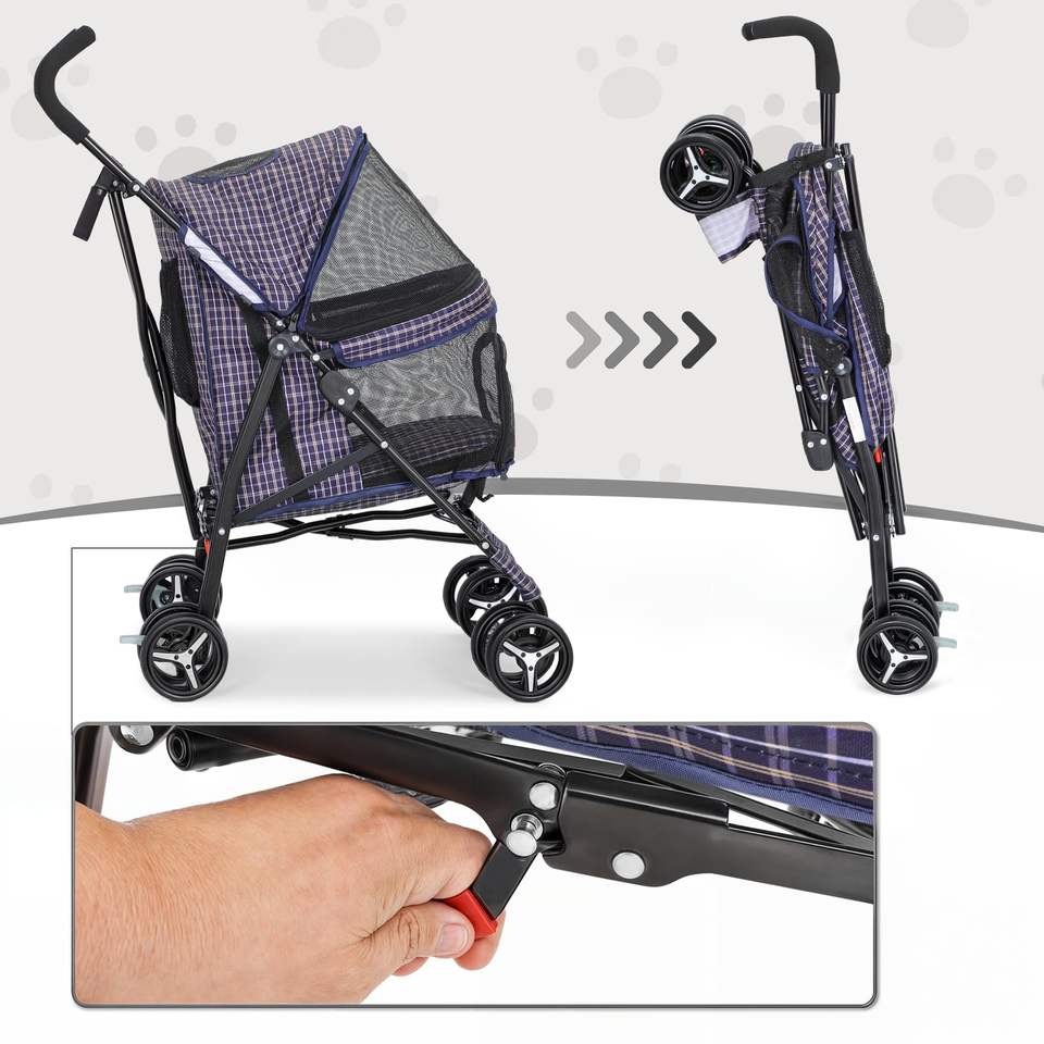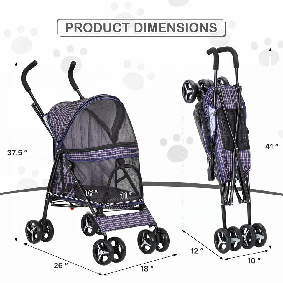 TH-PPS-078 Pet Friendly Foldable Stroller with Lightweight Build Zippered Canopy and Custom Print Option