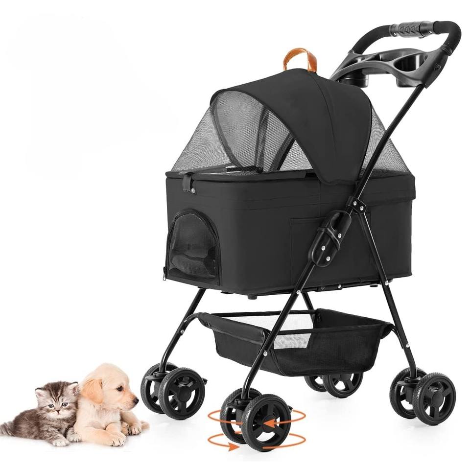 TH-PPS-162 Breathable Mesh Pet Stroller for Small Animals with Storage Bag and Cup Holder Ideal for Outdoor Use Customizable