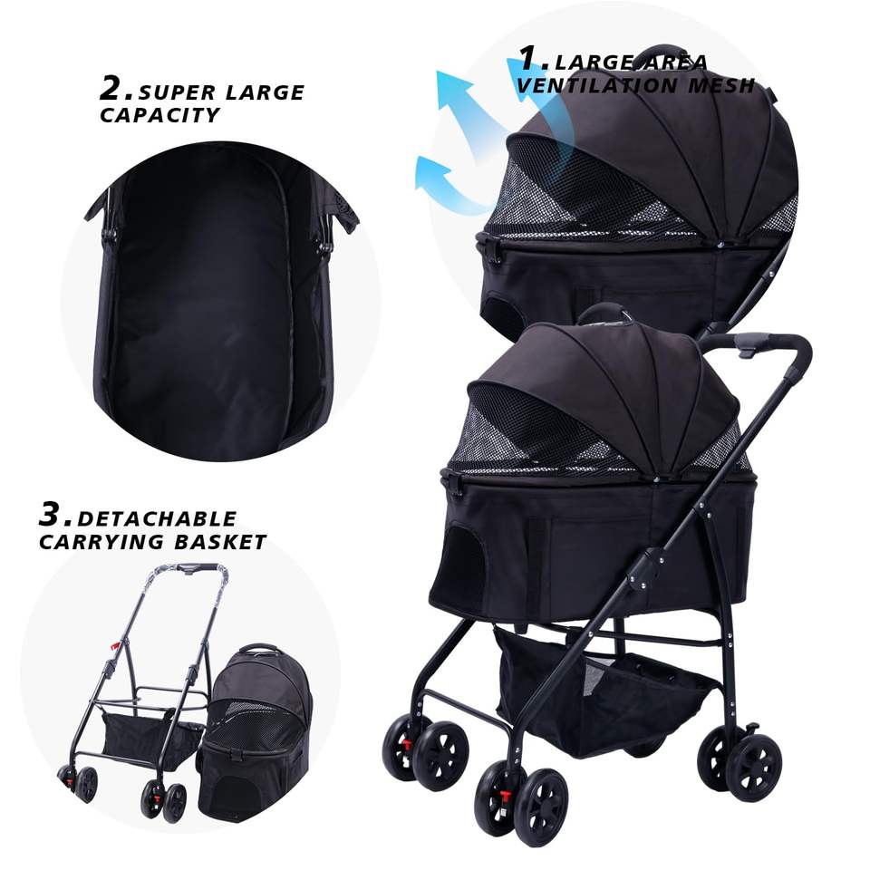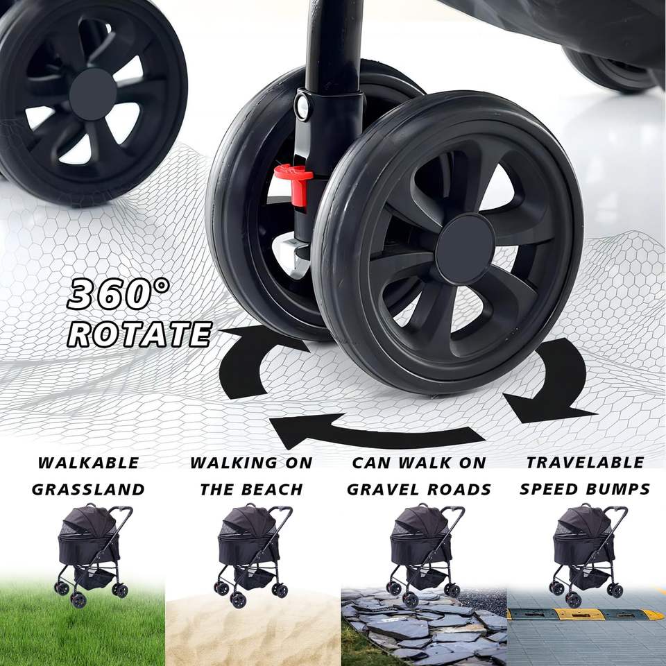 TH-PPS-305 Custom Four Wheel Pet Stroller with Shock Absorbers Easy Folding Mechanism and Sunshade Canopy