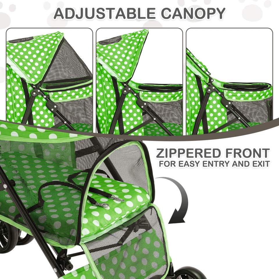 TH-PPS-342 Four Wheel Lightweight Pet Stroller with Quick Folding Frame Safety Lock and Breathable Side Panels