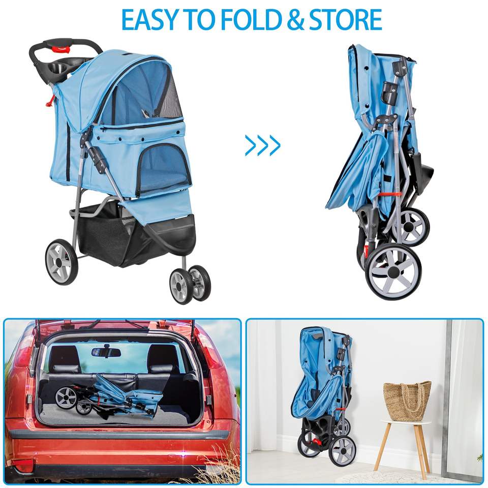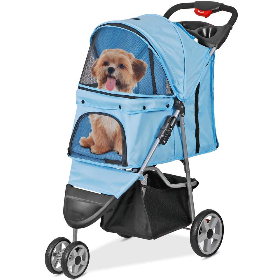 TH-PPS-375 Premium Three Wheel Pet Stroller with Waterproof Fabric Adjustable Canopy and Spacious Cabin