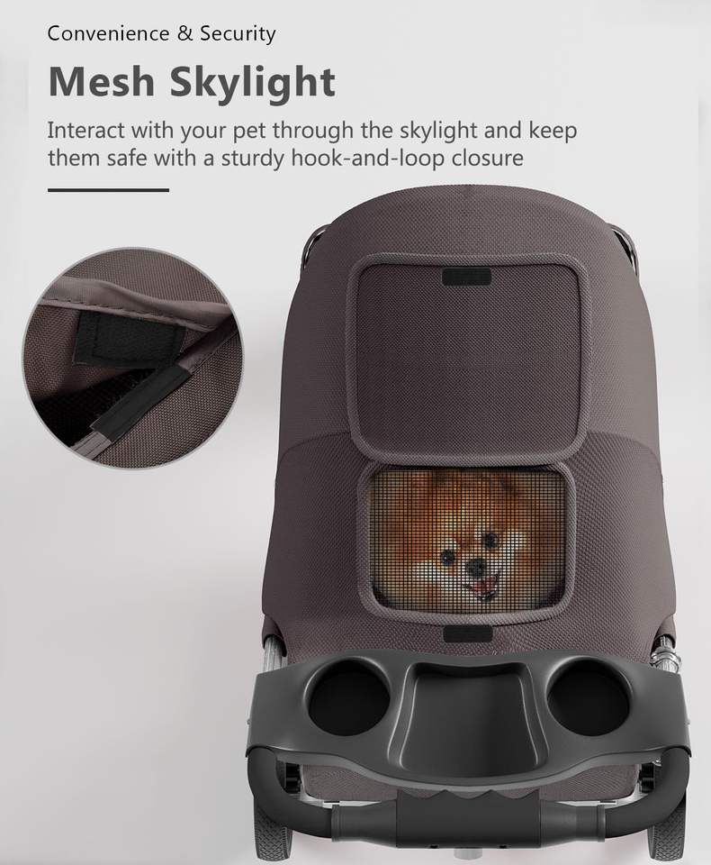 TH-PPS-393 Foldable Three Wheel Pet Stroller for Travel with Spacious Cabin Breathable Mesh and Safety Leash
