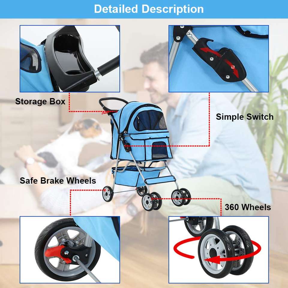 TH-PPS-407 Luxury Four Wheel Pet Stroller with Shock Absorbing Wheels Waterproof Fabric and Underseat Basket
