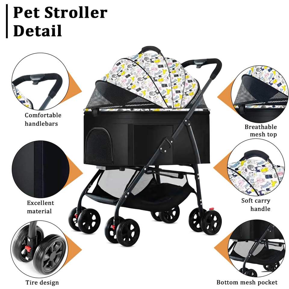 TH-PPS-438 Portable Four Wheel Pet Stroller with Durable Tires Lightweight Structure and Storage Basket