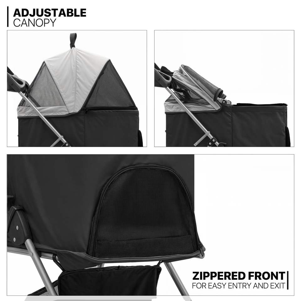 TH-PPS-495 Luxury Four Wheel Pet Stroller with Adjustable Sunshade Safety Straps Large Basket and Cup Holders