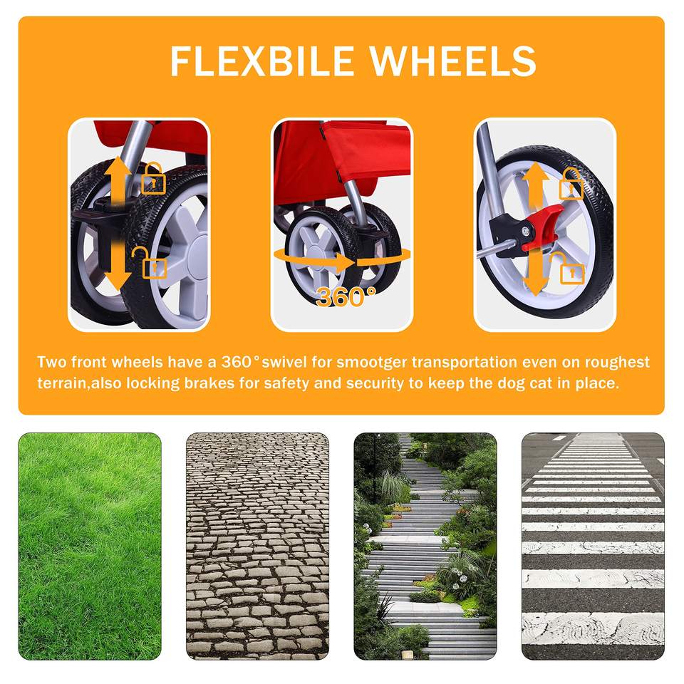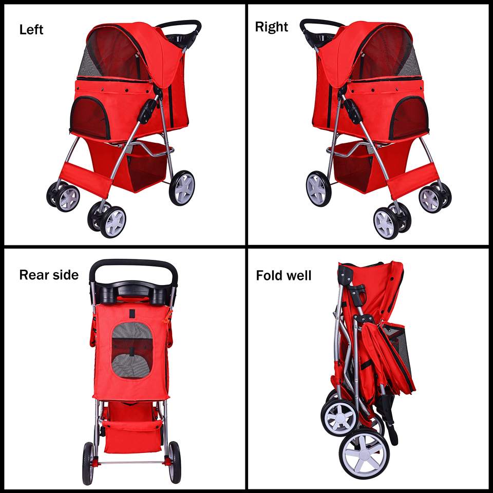 TH-PPS-523 Foldable Four Wheel Pet Stroller with Durable Stainless Steel Frame Adjustable Sunshade and Large Capacity Basket