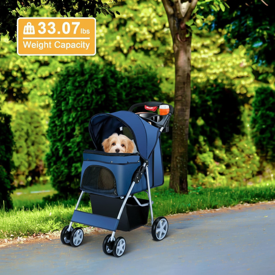 TH-PPS-614 Luxury Pet Stroller 4-Wheel Foldable Detachable Carrier Waterproof Cabin Breathable Oxford Fabric for Dogs Cats