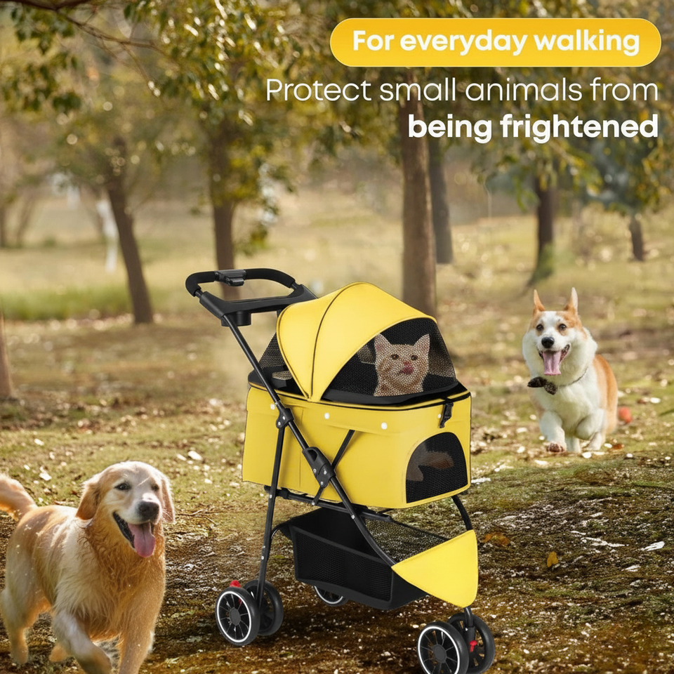 TH-PPS-640 Portable Pet Stroller 3 Wheel, Quick One-Hand Folding with Thick Waterproof Fabric and User-friendly Cup Holder