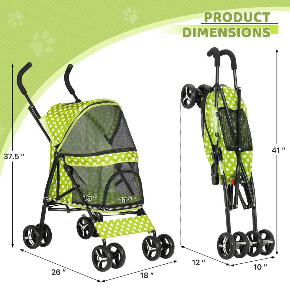 TH-PPS-646 Foldable Pet Stroller 4 Wheel with Adjustable Canopy, Cross-Frame Structure and Zippered Front for Dogs and Cats