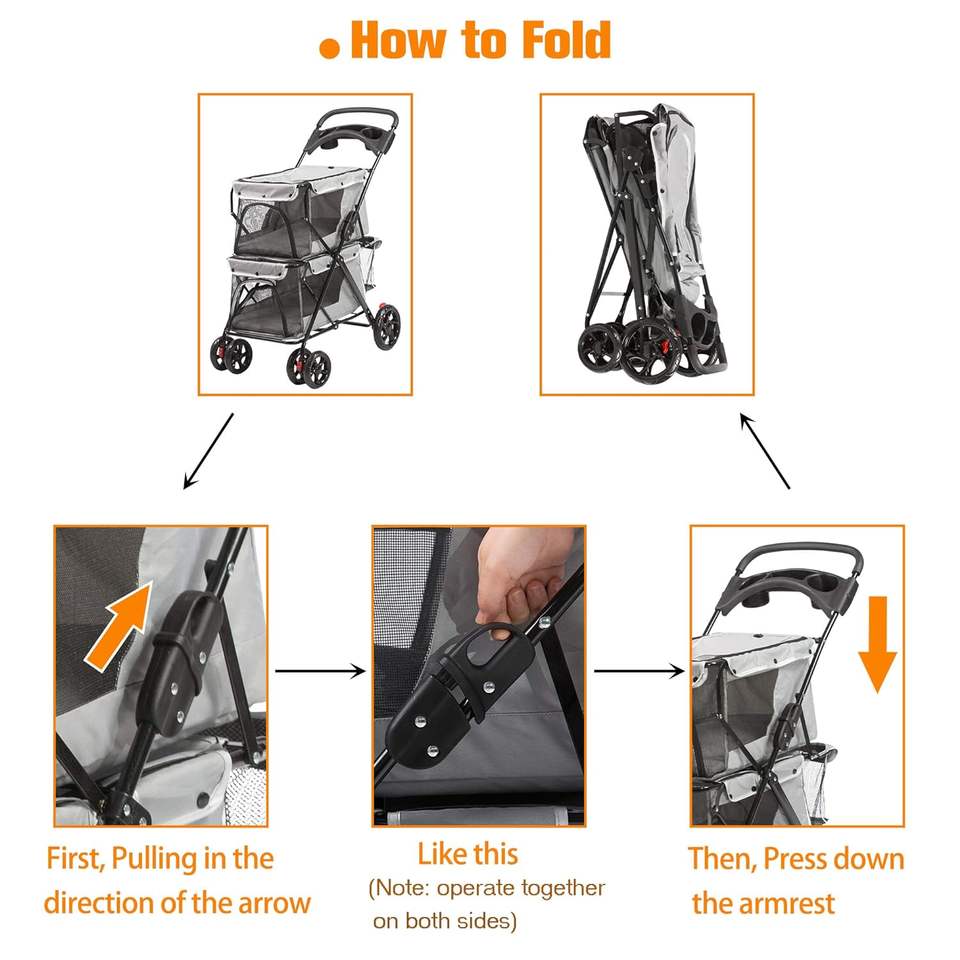 TH-PSP-092 Vietnam Factory Pet Stroller Dual Cage Pet Cart Carrier for Medium Dog Traveling