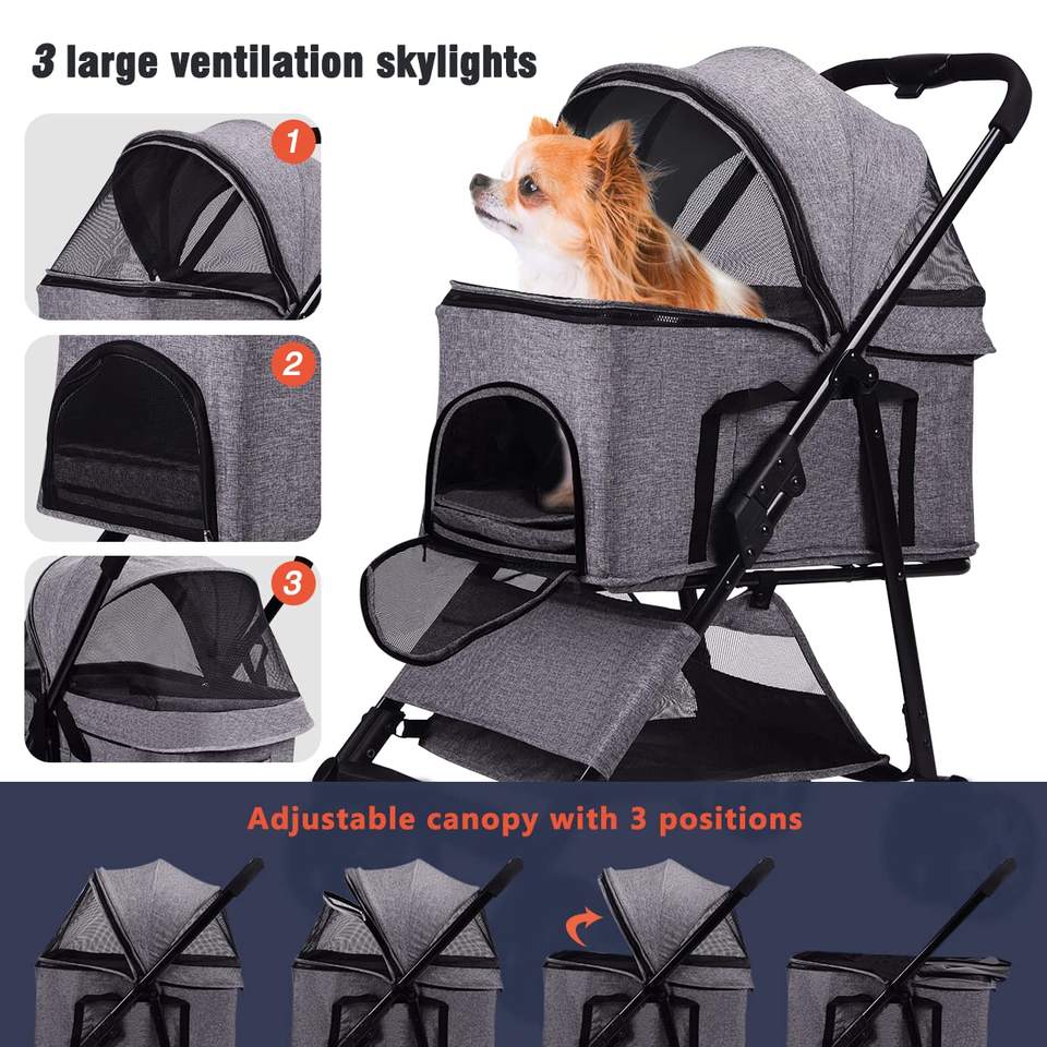 TH-PSP-349 American Pet Cart Breathable Fabric Design 3 Wheels Pet Stroller Comfort Medium Cat stroller
