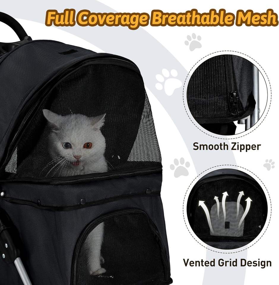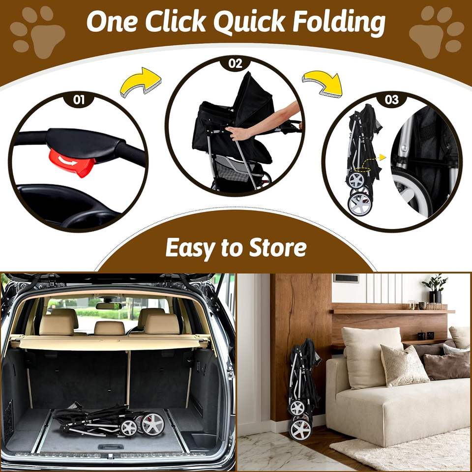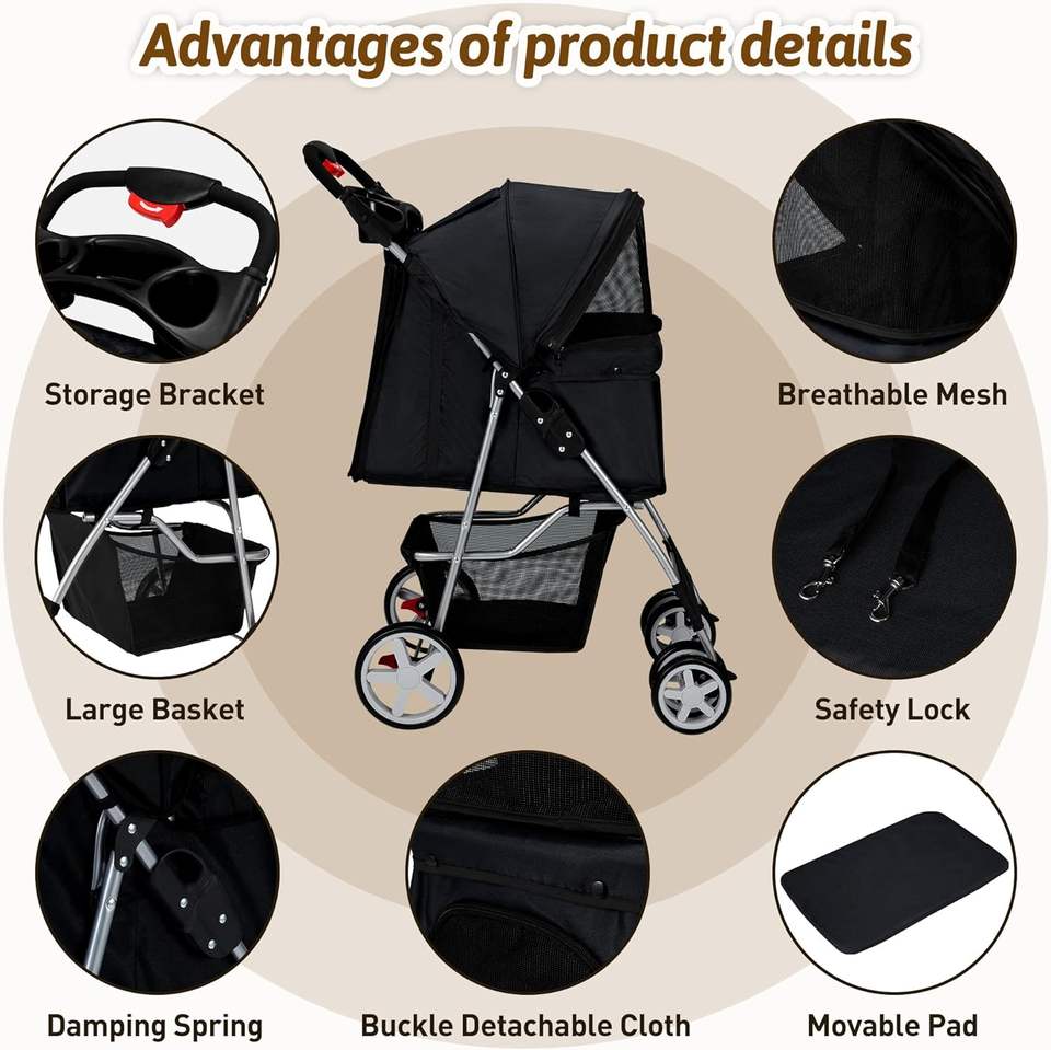 TH-PSP-401 Wheel Pet Stroller Cat Stroller Lightweight Foldable Portable Compact Jogger Pet Gear Puppy Travel