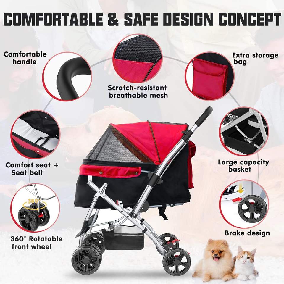 TH-PSP-452 Customs Stroller with Weather Cover for All-Season Storage Basket and Cup Holder Breathable and Visible Mesh