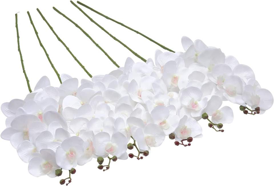 THAOF-145 Temptation Orchid Stems Artificial Flowers Real Touch Latex Faux Phalaenopsis Branches 9 Large Blooms