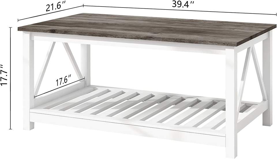 THCT - 0031 Farmhouse Coffee Table and End Table Set in Oak Grey Wooden Living Room Furniture with Slats Base