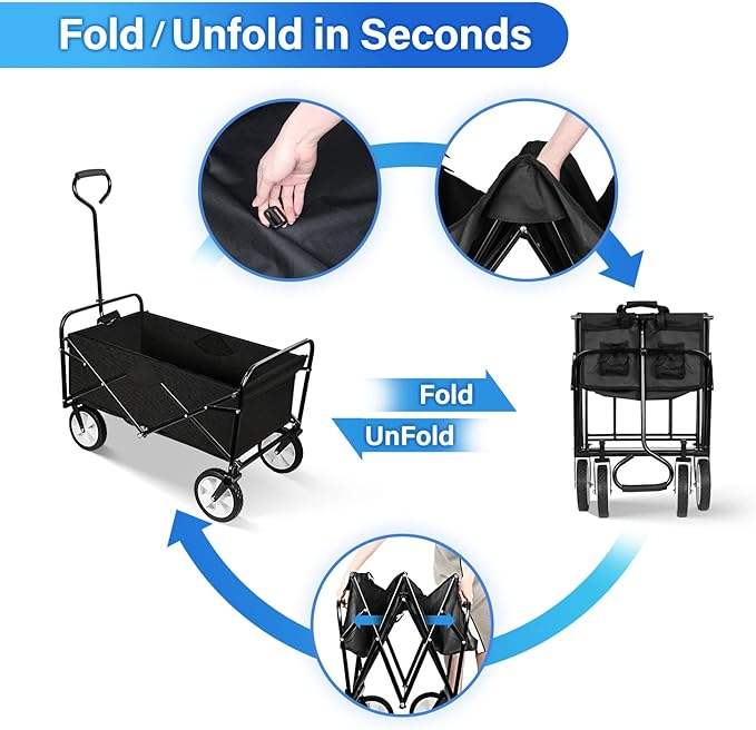 THCW10029 - Wagons Cart Heavy-Duty Folding PRO, Collapsible Carts, Large Capacity, Outdoor Camping Garden Carts, Anti-Skid,Black