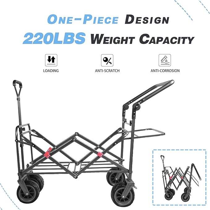 THCW10087 - Collapsible Folding Wagon Cart with Rear Bag Adjustable, All Terrain Big Wheel for Sand, Outdoor, Camping, Turquoise