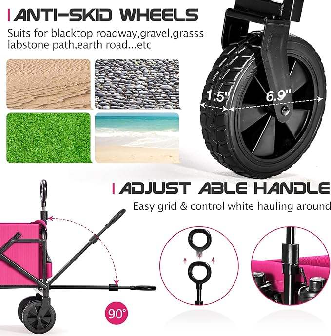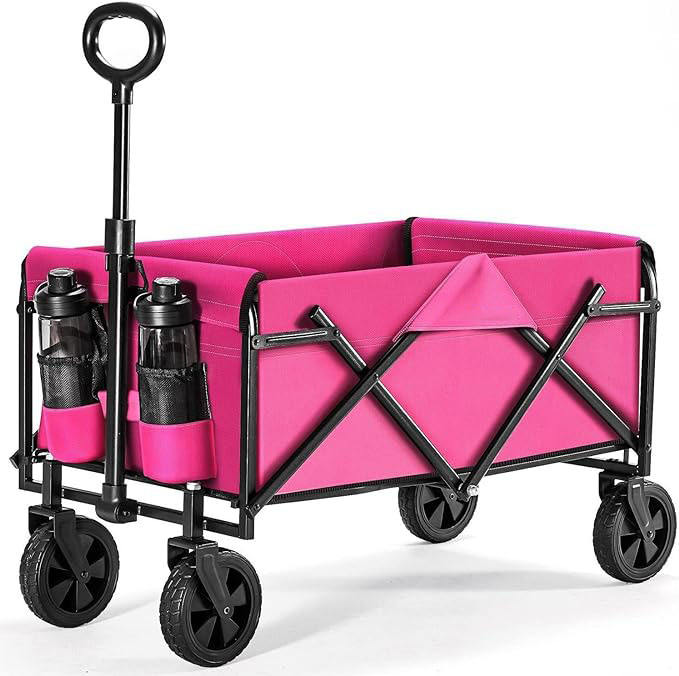THCW10124 - Wagon Cart with Collapsible Utility Wagon Heavy Duty, Folding Wagon, All Terrain Wagon Outdoor Camping Garden, Pink