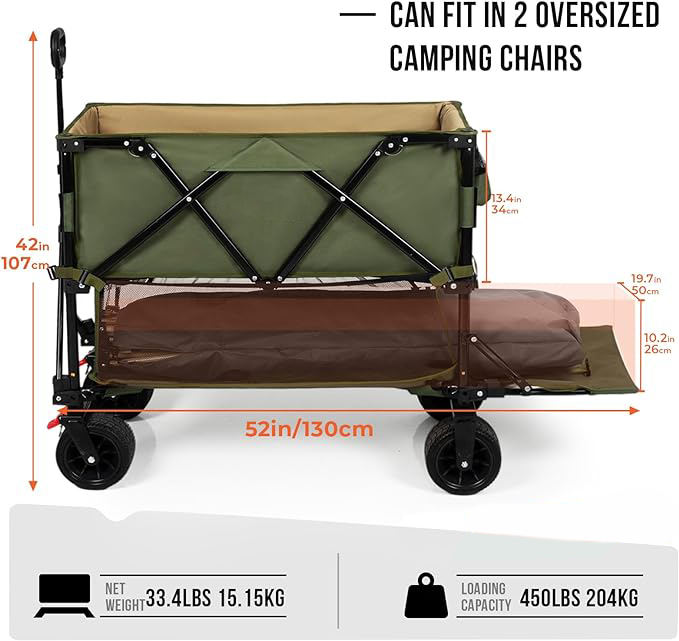 THCW10223 Double Decker Wagon Large Capacity Foldable Camping Wagon for Football Game & Sports Events Customizable OEM Green