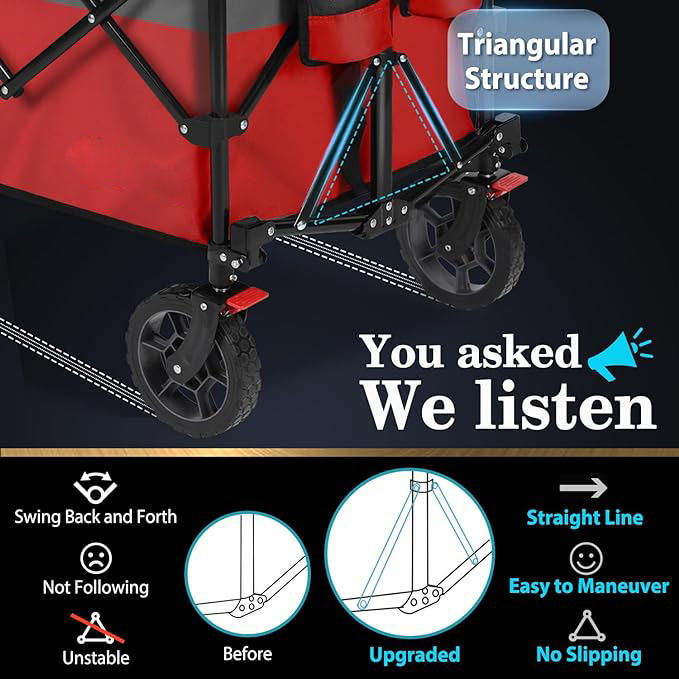 THCW10324 - Foldable Wagon, Portable Heavy Duty Collapsible Beach Cart, Large Capacity Utility Wagon for Shopping, Camping, Red