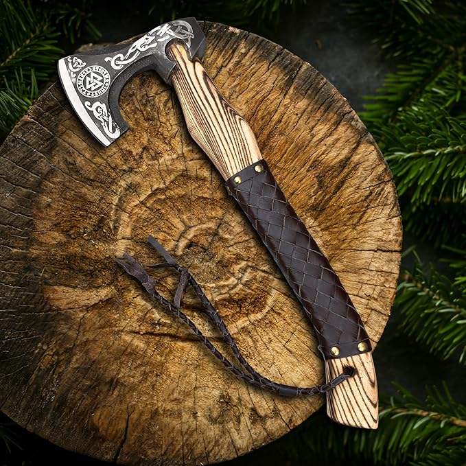 THEWIZCRAFTS High Quality Handmade Industrial Carbon Steel Viking Battle Axe Head Wholesale Reseller Leather Wrapped Rose Wood
