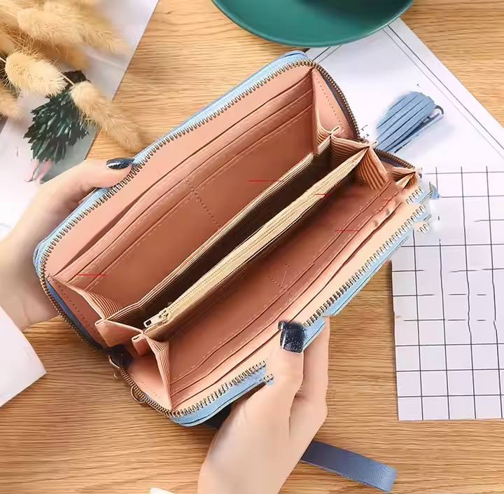 THK0071 Women Wallets with Zipper Pocket Purse Card Holder Patchwork Women Long Wallet Lady Tassel Short Coin Purse