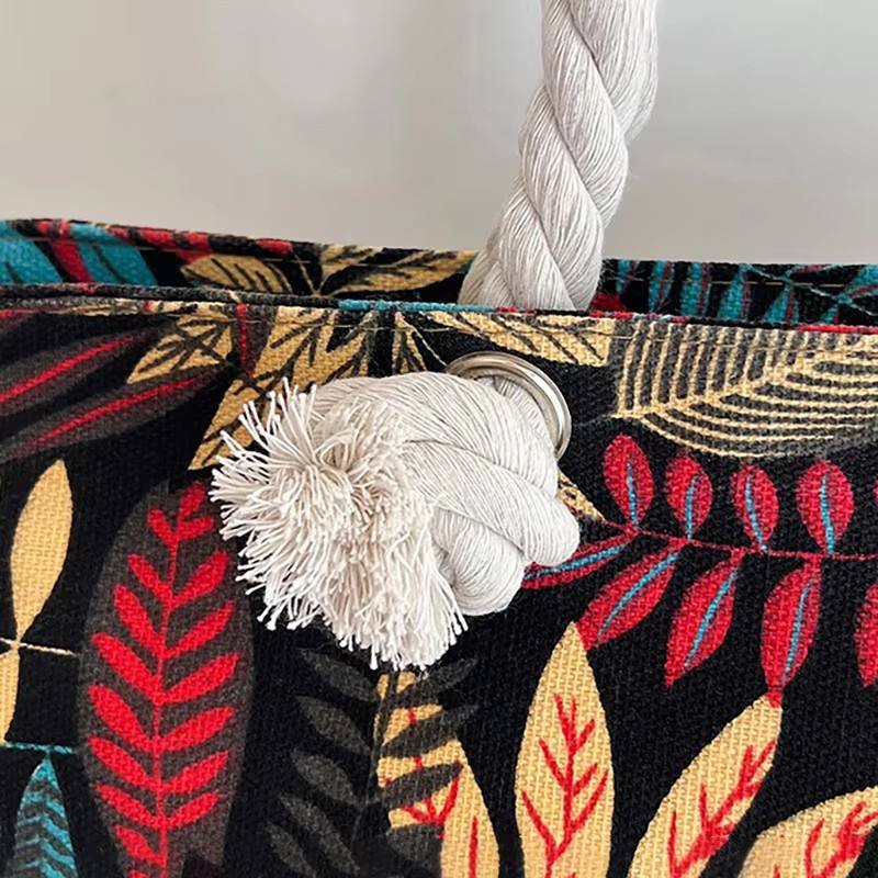 THK0166 Ladies Casual Flower Printing Canvas Graffiti Shoulder Beach Bag Women Handbag Tote Bag