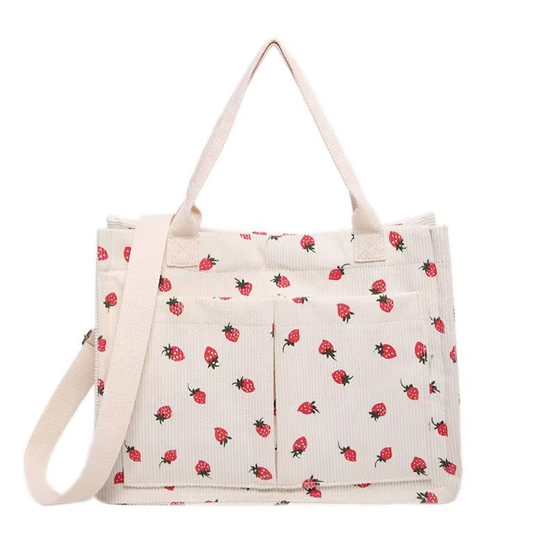 THK0185 Women's Large Capacity Cross-Border Strawberry Printed Handbag Zipper Closure Shoulder Crossbody Shopping Bag