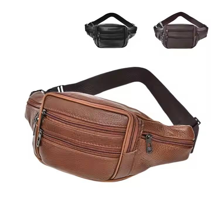 THK0258 Wholesale Men Sport Leather Waist Bag Waterproof Anti-Theft Phone Crossbody Zipper 6 Pockets Fanny Packs