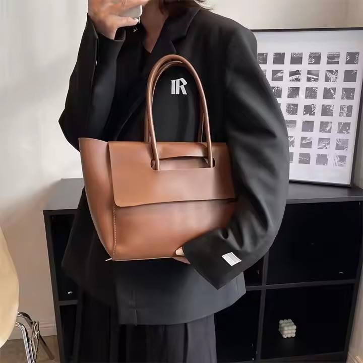 THK0341 Women's PU Tote Bag with Zipper Closure Large Capacity Retro Commute Design for Ladies