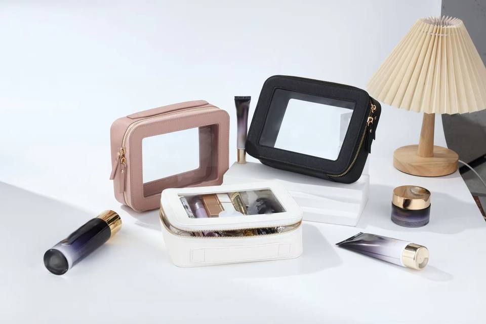 THK0370 Fashion Large Capacity Waterproof Cosmetic Pouch Makeup Bag PU Leather PVC Transparent Zipper Travel for Washbag